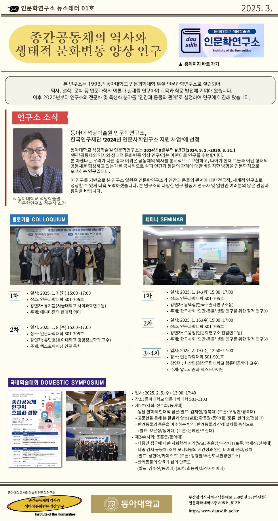 인문학연구소 뉴스레터 01호(3월 발행) 페이지 정보 작성일 2025-03-31 본문 <인문학연구소 뉴스레터 01호>아래 이미지를 누르시면 새 창에서 더 자세히 보실 수 있습니다. 목록 이전글인문학연구소 뉴스레터 02호(6월 발행) 25.06.30